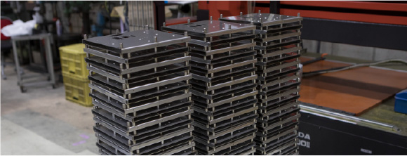 電力会社や産業用機械、医療用機械メーカー向けの制御・操作盤筐体及び装置用板金部品を中心に各種板金加工製品を幅広く製造している会社です。その中でもステンレスや薄板加工の精度や品質において高い評価をいただいております。